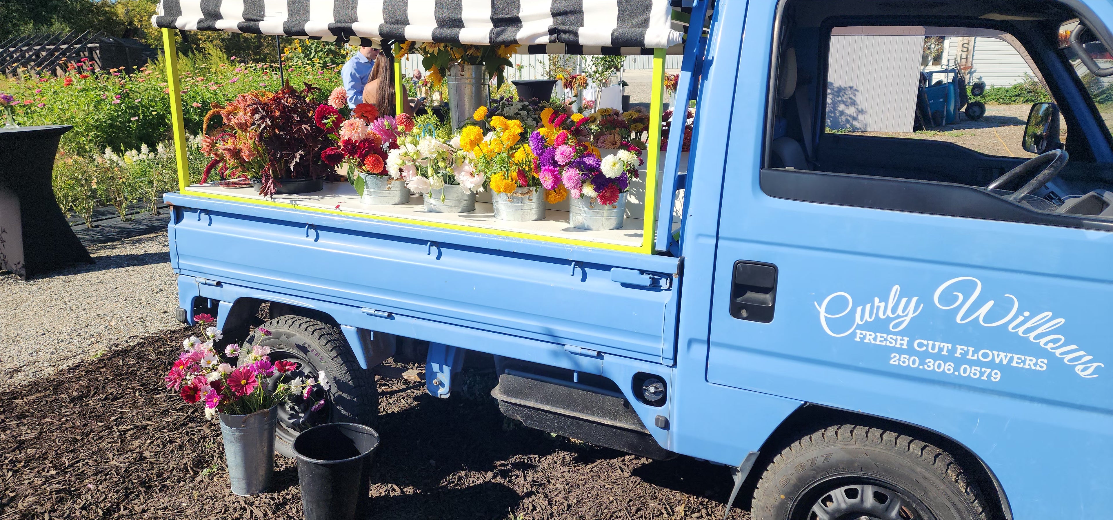 Welcome to Curly Willows Farmstead — a small-scale flower farm rooted in Vernon, BC. Led by Denise, our owner, grower, and self-taught florist, we grow fresh, seasonal blooms without the use of pesticides, right on our plot along Pottery Road.